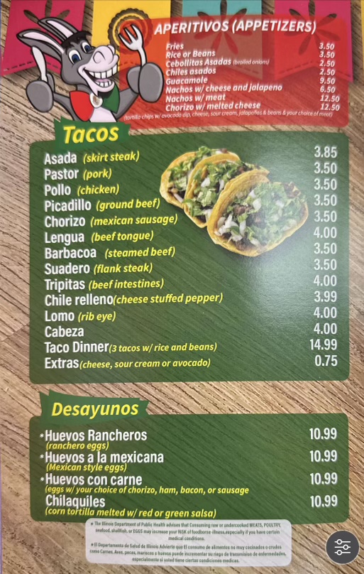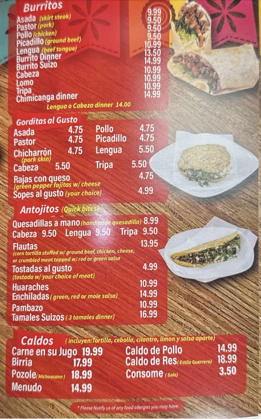 Start your day with classic breakfasts like Huevos Rancheros or Chilaquiles, perfect for a comforting morning meal. Throughout the day, the menu highlights include fresh, handmade tacos—such as Al Pastor and Birria—alongside hearty options like Pozole and Mole Casero that invite sharing and gathering around the table. Simple appetizers like Guacamole or freshly made Nachos complement the flavors, while the drink selection features well-crafted Margaritas, Micheladas, and rich Hot Chocolate to suit any mood.